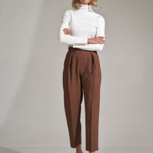 Klasyczna bluzka ecru z golfem i długim rękawem.