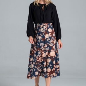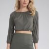 Bluzka, półokrągły dekolt wiązany sznurkiem, długi rękaw z wszytą gumką.