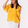 Uniwersalna bluzka damska wykonana z lekkiej przewiewnej wiskozy to klasyk w jesienno-zimowej garderobie. Model posiada wysoki golf i długie rękawy zapewniając funkcjonalność. Przeszycie na przodzie bluzki dodaje jej oryginalności i wyjątkowego charakteru. Model jest delikatnie dopasowany ale nie krępujący ruchów, dzięki elastycznemu materiałowi. Jego prosta forma stanowi doskonałe uzupełnienie wielu stylizacji zarówno casualowych jak i bardziej formalnych. Model idealny dla kobiet ceniących połączenie wygody, funkcjonalności i ponadczasowości.