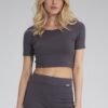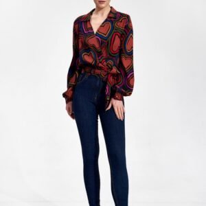 Elegancka bluzka kopertowa z długim marszczonym rękawem z mankietem, zapinanym na zatrzask. Dół bluzki wiązany szeroką szarfą.