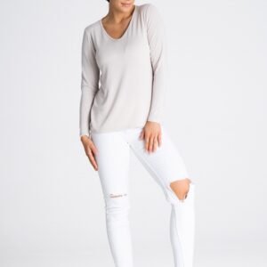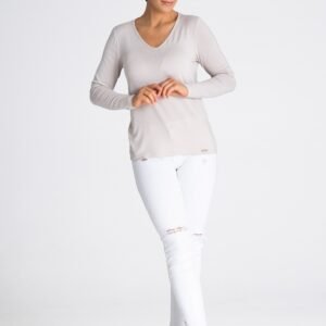 Bluzka z przyjemnej w noszeniu tkaniny z długim rękawem. Dekolt w kształcie litery V optycznie wydłuża szyję.