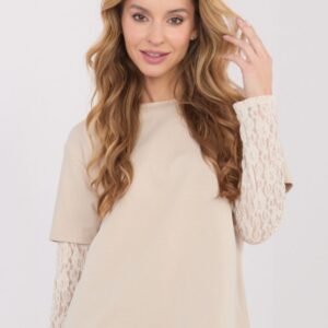 Codzienna damska bluzka o casualowym charakterze łączy prostotę z delikatnym, kobiecym akcentem. Wykonana z wysokiej jakości mieszanki bawełny, nylonu i elastanu jest przyjemna w dotyku, przewiewna i elastyczna, zapewniając komfort noszenia przez cały dzień. Gładki materiał podkreśla uniwersalny styl bluzki, dzięki czemu świetnie sprawdzi się w codziennych stylizacjach. Model ma standardową długość oraz okrągły dekolt, który dodaje klasycznej elegancji. Rękawy w 3/4 wykonane z delikatnej koronki wprowadzają subtelny, efektowny detal, wyróżniając bluzkę spośród klasycznych propozycji. To idealny wybór na co dzień dla kobiet ceniących wygodę połączoną z kobiecym wykończeniem.