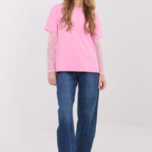 Codzienna damska bluzka o casualowym charakterze łączy prostotę z delikatnym, kobiecym akcentem. Wykonana z wysokiej jakości mieszanki bawełny, nylonu i elastanu jest przyjemna w dotyku, przewiewna i elastyczna, zapewniając komfort noszenia przez cały dzień. Gładki materiał podkreśla uniwersalny styl bluzki, dzięki czemu świetnie sprawdzi się w codziennych stylizacjach. Model ma standardową długość oraz okrągły dekolt, który dodaje klasycznej elegancji. Rękawy w 3/4 wykonane z delikatnej koronki wprowadzają subtelny, efektowny detal, wyróżniając bluzkę spośród klasycznych propozycji. To idealny wybór na co dzień dla kobiet ceniących wygodę połączoną z kobiecym wykończeniem.