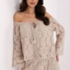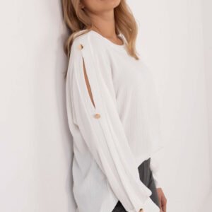 Elegancka bluzka klasyczna, idealna na codzienne wyjścia, do pracy oraz na wizytowe okazje. Wykonana z wysokiej jakości materiału łączącego poliester i elastan, co zapewnia wygodę i trwałość. Bluzka ma standardową długość, a jej dekolt w kształcie łódki dodaje subtelnej elegancji. Długie rękawy z rozcięciami oraz ozdobnymi guzikami stanowią modny akcent, który wyróżnia ten model. Gładka tkanina sprawia, że bluzka jest łatwa do stylizacji i doskonale komponuje się z różnymi elementami garderoby. Idealna na wiele okazji, zapewniając klasyczny, ale nowoczesny look.
