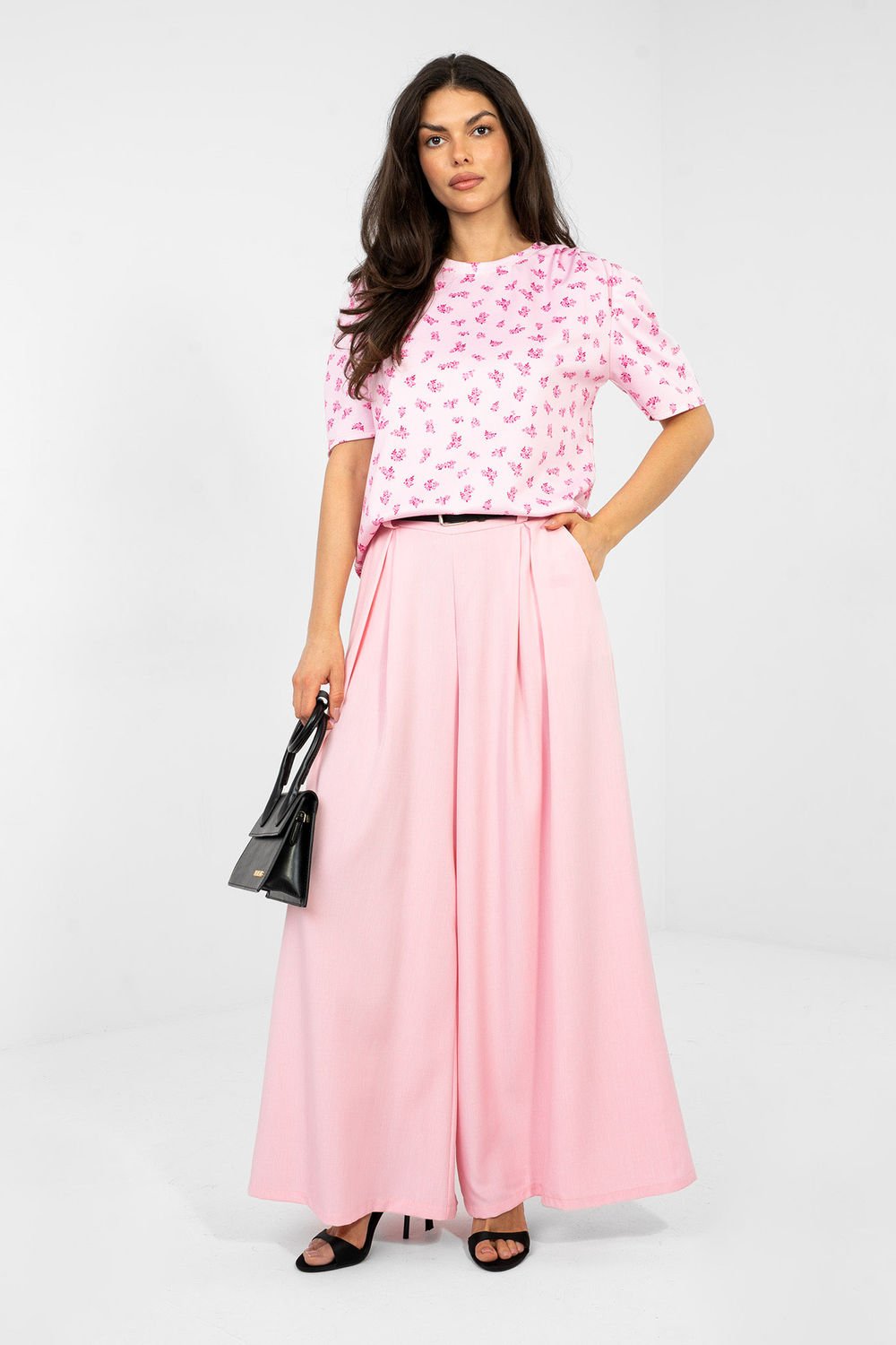 Elegancka bluzka codzienna to idealne połączenie komfortu i kobiecego stylu. Doskonale sprawdzi się zarówno na co dzień, jak i do pracy, tworząc stylowe i schludne stylizacje. Model o standardowej długości posiada klasyczny, okrągły dekolt oraz krótki rękaw, co zapewnia wygodę noszenia przez cały dzień. Nadruk w kwiaty nadaje całości subtelnego, świeżego charakteru, podkreślając kobiecy styl. Ozdobne marszczenia dodają bluzce elegancji i delikatnie modelują sylwetkę. Wykonana z połączenia poliestru, wiskozy i elastanu, łączy trwałość z miękkością i elastycznością materiału, gwarantując komfort oraz swobodę ruchów. To uniwersalna propozycja, która świetnie komponuje się zarówno z eleganckimi spodniami, jak i spódnicą czy klasycznymi jeansami.