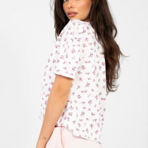 Elegancka bluzka codzienna to idealne połączenie komfortu i kobiecego stylu. Doskonale sprawdzi się zarówno na co dzień, jak i do pracy, tworząc stylowe i schludne stylizacje. Model o standardowej długości posiada klasyczny, okrągły dekolt oraz krótki rękaw, co zapewnia wygodę noszenia przez cały dzień. Nadruk w kwiaty nadaje całości subtelnego, świeżego charakteru, podkreślając kobiecy styl. Ozdobne marszczenia dodają bluzce elegancji i delikatnie modelują sylwetkę. Wykonana z połączenia poliestru, wiskozy i elastanu, łączy trwałość z miękkością i elastycznością materiału, gwarantując komfort oraz swobodę ruchów. To uniwersalna propozycja, która świetnie komponuje się zarówno z eleganckimi spodniami, jak i spódnicą czy klasycznymi jeansami.