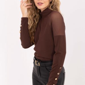 Elegancka bluzka o gładkim wykończeniu to stylowy wybór idealny na co dzień, do pracy oraz na wizytowe okazje. Wykonana z wysokiej jakości mieszanki poliestru, wiskozy i elastanu, zapewnia komfort noszenia oraz doskonałe dopasowanie. Model wyróżnia się subtelnymi, siateczkowymi wstawkami na ramionach, które dodają całości nowoczesnego i kobiecego charakteru. Bluzka ma standardową długość, długi rękaw oraz klasyczny golf, który podkreśla elegancki styl. Ozdobne guziki na rękawach stanowią efektowny detal, nadając modelowi wyjątkowego wyrazu. Brak zapięcia sprawia, że bluzka jest wygodna i łatwa w zakładaniu. To ponadczasowa propozycja dla kobiet ceniących szyk, wygodę i subtelne akcenty w codziennych oraz bardziej formalnych stylizacjach.