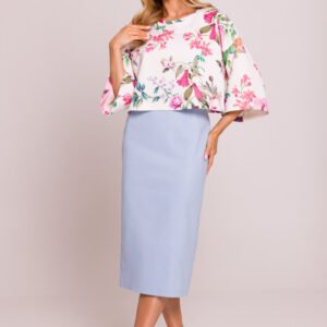 Krótka bluza oversize z dzianiny z nadrukiem to idealna propozycja na codzienne stylizacje z nutą luzu. Charakteryzuje się szerokimi rękawami o długości 3/4, które dodają jej nietuzinkowego wyglądu, oraz dekoltem w kształcie łódki, który subtelnie eksponuje ramiona. Wykonana z miękkiej dzianiny, zapewnia wygodę i komfort noszenia przez cały dzień. Bluzka została zaprojektowana i uszyta w Polsce, co gwarantuje wysoką jakość i staranność wykonania. Idealna do zestawienia z jeansami, spódnicą lub sportowymi spodniami, nadaje się zarówno na casualowe, jak i bardziej eleganckie okazje.