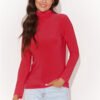 Funkcjonalna bluzka damska wykonana z elastycznej, nieprzezroczystej tkaniny to klasyk wśród bluzek. Dekolt w postaci praktycznego golfu w połączeniu z długim rękawem, otuli w chłodniejsze dni. Natomiast pozłacana blaszka w górnej części pleców, dodaje jej subtelnej elegancji. Dzięki prostej formie, perfekcyjnie odnajduje się w casualowych stylizacjach, które możesz nosić zarówno do biura jak i na wyjścia na miasto. Golf damski doskonale współgra zarówno z dopasowanymi rurkami jak i spodniami typu mom fit. Ta bluzka to połączenie funkcjonalności z elegancją w efekcie dając udany przepis na look.
