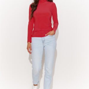 Funkcjonalna bluzka damska wykonana z elastycznej, nieprzezroczystej tkaniny to klasyk wśród bluzek. Dekolt w postaci praktycznego golfu w połączeniu z długim rękawem, otuli w chłodniejsze dni. Natomiast pozłacana blaszka w górnej części pleców, dodaje jej subtelnej elegancji. Dzięki prostej formie, perfekcyjnie odnajduje się w casualowych stylizacjach, które możesz nosić zarówno do biura jak i na wyjścia na miasto. Golf damski doskonale współgra zarówno z dopasowanymi rurkami jak i spodniami typu mom fit. Ta bluzka to połączenie funkcjonalności z elegancją w efekcie dając udany przepis na look.