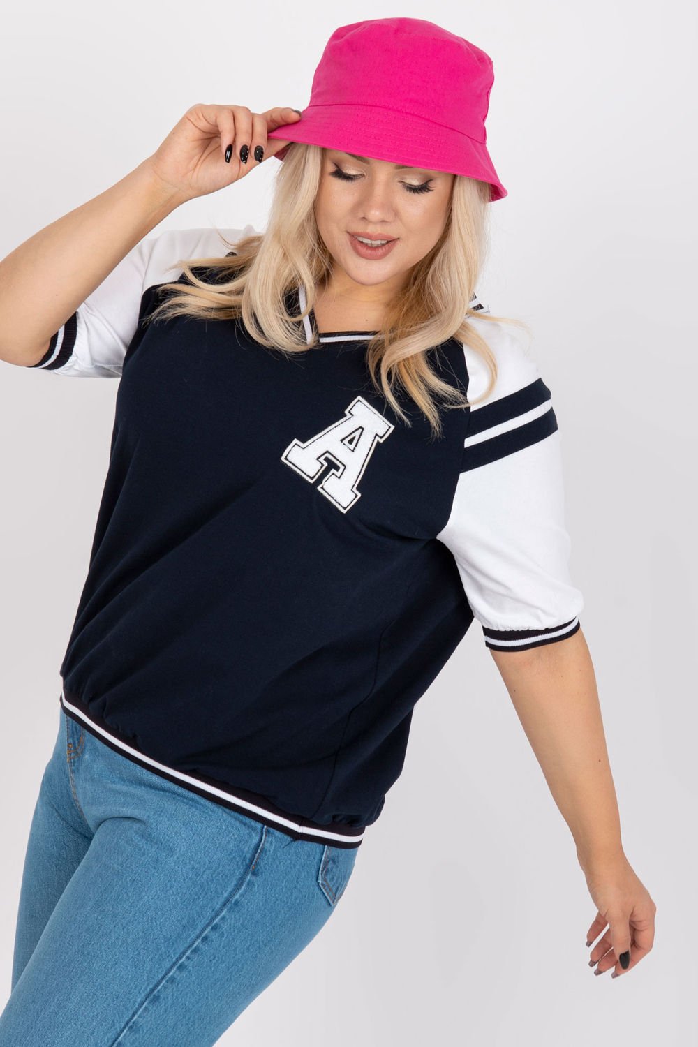 Bluzka codzienna z rękawem 3/4 oraz dekoltem w serek. Bluzka wykończona ściągaczami, na przodzie naszywka.