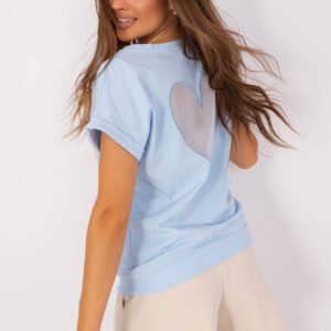 Bluzka z krótkim rękawkiem oraz okrągłym dekoltem. Na plecach ozdobna wstawka z siateczki w kształcie serca.