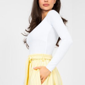 Klasyczna bluzka basic o dopasowanym kroju to must-have w każdej garderobie. Idealna na co dzień, świetnie sprawdzi się w casualowych stylizacjach, zarówno solo, jak i jako baza pod marynarkę czy kardigan. Model o standardowej długości z długim rękawem (longsleeve) został wykonany z wysokiej jakości bawełny z dodatkiem elastanu. Tkanina jest miękka, przewiewna i elastyczna, dzięki czemu bluzka doskonale dopasowuje się do sylwetki oraz zapewnia komfort przez cały dzień. Kwadratowy dekolt subtelnie podkreśla linię szyi i obojczyków, nadając całości nowoczesnego, kobiecego charakteru. Dodatkowym atutem jest podszewka na wysokości biustu, która zwiększa wygodę noszenia i poprawia estetykę układania się materiału. Gładki wzór podkreśla uniwersalność modelu, a brak zapięcia zapewnia prostotę i wygodę użytkowania.