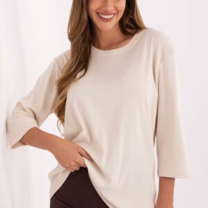Casualowa bluzka damska o gładkim wzorze to uniwersalna propozycja na codzienne stylizacje. Wykonana z przyjemnego w dotyku materiału, zapewnia komfort noszenia przez cały dzień. Model o standardowej długości z rękawem 3/4 i klasycznym okrągłym dekoltem łączy prostotę z wygodą, dzięki czemu świetnie sprawdzi się w casualowych zestawieniach zarówno ze spodniami, jak i spódnicą.