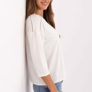 Casualowa bluzka damska z haftowanymi napisami to świetna propozycja na codzienne stylizacje. Wykonana z miękkiej bawełny z dodatkiem elastanu, zapewnia komfort i swobodę ruchów przez cały dzień. Model o standardowej długości z rękawem 3/4 i klasycznym okrągłym dekoltem łączy prostotę z subtelnym, dekoracyjnym akcentem w postaci haftu, dzięki czemu świetnie sprawdzi się zarówno do spodni, jak i spódnicy w casualowych zestawieniach.