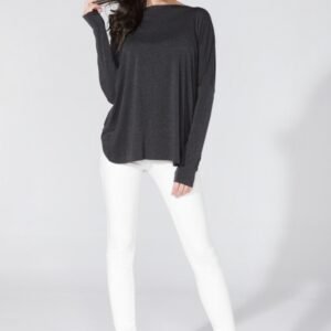 Oryginalna bluzka z delikatnej dzianiny o szerokim fasonie. Brzegi wykończone na surowo. Istnieje możliwość zamiany przodu z tyłem.