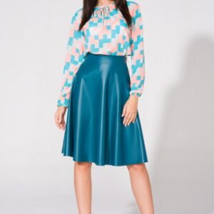 Elegancka bluzka z delikatnej tkaniny. Z przodu ozdobna łezka. Przy dekolcie lamówka wiązana na kokardkę. Dół oraz rękaw delikatnie ściągnięty.