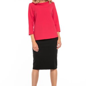 Elegancka bluzka z tkaniny z kołnierzykiem w style Jackie Kennedy. Z przodu przy dekolcie delikatny półgolf, z tyłu kołnierzyk. Na plecach lekko taliowana. Bluzka z rękawem 3/4. Idealna zarówno do spódnicy jak i do spodni.
