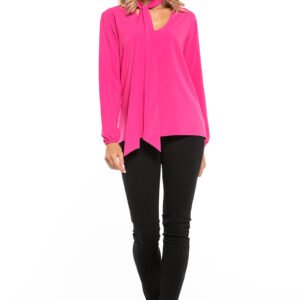 Elegancka bluzka z szyfonu z głębokim dekoltem. Rękawy ściągnięte gumką. Do bluzki dołączony jest krawat.