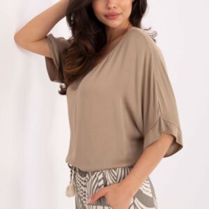 Codzienna bluzka w stylu casual to uniwersalna propozycja do wielu stylizacji. Wykonana z miękkiej, przewiewnej wiskozy, zapewnia komfort noszenia przez cały dzień. Gładka tkanina nadaje jej klasyczny i ponadczasowy charakter, idealny na co dzień do pracy, na spacer czy spotkanie ze znajomymi. Model o standardowej długości, z rękawem 3/4 oraz dekoltem w serek, który subtelnie podkreśla linię szyi. Prosta, a zarazem elegancka świetnie komponuje się zarówno z jeansami, jak i spódnicą.