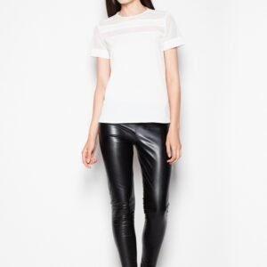Szykowna bluzka z krótkim rękawem z półokrągłym dekoltem. Posiada ozdobne, prześwitujące elementy przy dekolcie i rękawach. Model wykonany z doskonałej jakości materiału.