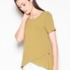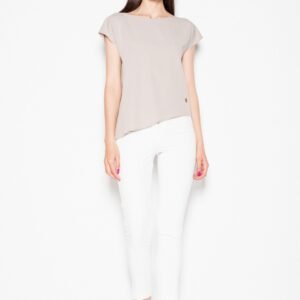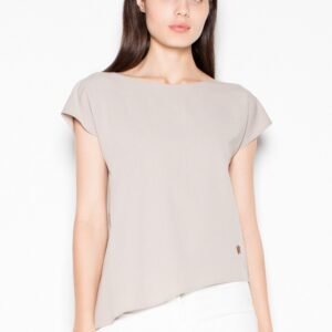 Luźna bluzka z okrągłym dekoltem i rękawami odkrywającymi ramiona. Model o asymetrycznym kroju. Stylowy i elegancki, idealny dla każdej sylwetki.
