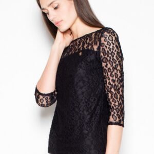 Szykowna bluzka z rękawem 3/4. Posiada prześwitującą górę w charakterystyczne cętki. Doskonale sprawdzi się do każdej stylizacji.