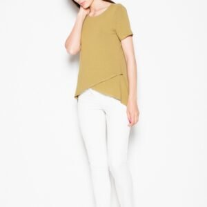 Asymetryczna bluzeczka z zakładanym przodem i dłuższym tyłem. Model prosty idealnie pasujący na co dzień.