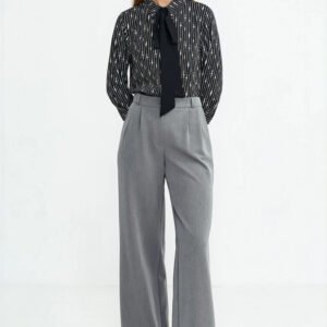 Ta wyjątkowa koszula to must-have dla każdej kobiety, która ceni oryginalność. Wykonana z przyjemnej w dotyku wiskozy, zapewnia komfort noszenia przez cały dzień. Ciekawy wzór dodaje jej charakteru i sprawia, że wyróżnia się z tłumu. Klasyczny kołnierzyk z czarną szarfą do wiązania pozwala na stworzenie wielu stylizacji. Długi rękaw zakończony mankietem nadaje koszuli elegancki wygląd. Zapięcie na guziki z przodu ułatwia zakładanie i zdejmowanie. Ta koszula to inwestycja w Twoją garderobę. Jej oryginalny wzór i przyjemny materiał sprawią, że poczujesz się wyjątkowo i stylowo w każdej sytuacji. Jest to element, który powinien znaleźć się w szafie każdej kobiety ceniącej sobie indywidualność.