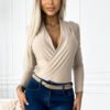 Kopertowe body w kolorze czarnym. Głęboki, kopertowy dekolt w kształcie litery V podkreśla biust i nadaje kobiecości. Elastyczny i przyjemny w dotyku materiał sprawia, że bluzkę body można komfortowo nosić przez cały dzień. Można je łączyć zarówno ze spódniczką jak i z dopasowanymi spodniami. Marka numoco. Produkcja Polska.