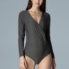 Eleganckie body z kopertowym dekoltem w serek marszczone w pasie. Fason dopasowany z długim, prostym rękawem. Pięknie podkreśli kobiece atuty.