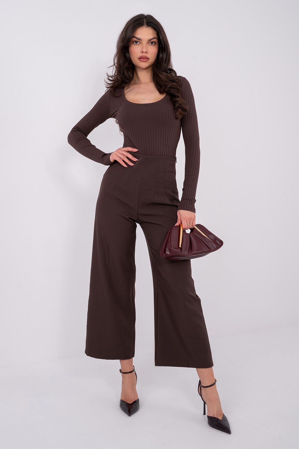 Casualowe body damskie wykonane z prążkowanego materiału to uniwersalna i wygodna baza do codziennych stylizacji. Uszyte z połączenia bawełny i elastanu, zapewnia wysoki komfort noszenia, dobrą oddychalność oraz elastyczność, dzięki której idealnie dopasowuje się do sylwetki. Gładki wzór nadaje całości minimalistycznego charakteru i sprawia, że body łatwo łączyć z różnymi elementami garderoby. Model o standardowej długości z długim rękawem doskonale sprawdzi się przez cały rok, zarówno samodzielnie, jak i jako warstwa pod marynarkę czy sweter. Klasyczny, okrągły dekolt podkreśla uniwersalny styl i zapewnia wygodę noszenia na co dzień. Praktyczne zapięcie na haftki zwiększa funkcjonalność i komfort użytkowania. To body to idealny wybór dla kobiet, które cenią prostotę, wygodę i casualowy styl, a jednocześnie chcą podkreślić sylwetkę w subtelny i modny sposób.