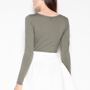 Dopasowane body z długim rękawem z efektywnym lejącym się dekoltem. Model idealnie pasujący do obcisłych, klasycznych, jeansów.