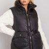 Ciemnożółta kamizelka z chowanym kapturem. Kamizelka zapinana na zamek.