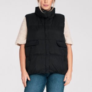 Krótka kamizelka bez rękawów, zapinana na praktyczne napy. Wyposażona w wsuwane kieszenie, które podkreślają jej sportowy charakter. Wypełnienie z naturalnego kaczego puchu zapewnia lekkość i doskonałą izolację termiczną. Dodatkowe ściągacze po wewnętrznej stronie u dołu gwarantują lepsze dopasowanie i komfort noszenia.