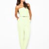 Kombinezon damski bez rękawków, zapinany na zamek. W pasie pasek zapinany na klamrę.