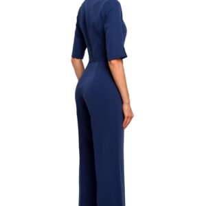 Elegancki i minimalistyczny, kombinezon z prostymi nogawkami i dopasowaną górą, która kończy się stójką. Kombinezon zapinany na kryty zamek, po bokach kieszenie. Dzięki swojej prostocie łączy się różnymi dodatkami i pasuje na wszelkie okazje jak i na co dzień do pracy.