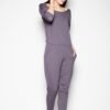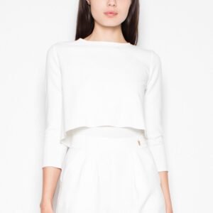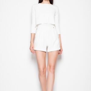 Elegancki, dwuwarstwowy kombinezon z krótkimi spodenkami na ramiączkach. Góra z długim rękawem, zakładana od przodu, z tyłu zapinana na haftkę. Model o oryginalnym fasonie.