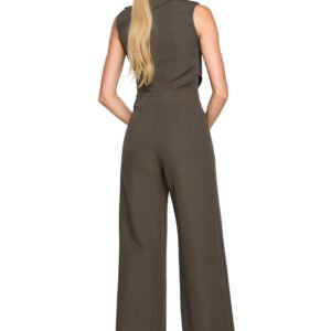 Kombinezon wszedł już na dobre do garderoby dedykowanej na specjalne okazje. Nasz fantastyczny kombinezon z eleganckimi szerokimi nogawkami idealnie nadaje się na wielkie wyjścia dzięki wyjątkowej górze z wywijaną stójką i ozdobnym zapięciem na ramieniu oraz podwójnym, dekoracyjnym przodem. Kombinezon bez podszewki, zapinany na kryty zamek.