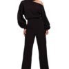Prezentujemy wyjątkowy kombinezon z tkaniny, którego projekt i wykonanie odzwierciedlają najwyższe standardy polskiego krawiectwa. Ten jednoczęściowy kombinezon to połączenie nowoczesności, wygody i unikalnego stylu, emanującego z polskiego rzemiosła krawieckiego. Nogawki kombinezonu, zwężane ku dołowi, przykuwają uwagę ozdobną asymetrią na boku, dodając całości subtelnej ekstrawagancji. Górna część kombinezonu to kopertowa bluzka bez rękawów, z eleganckim kołnierzem i dekoltem w kształcie litery V. To połączenie klasyki z nowoczesnością, tworzące efektowny i stylowy look. W talii z przodu kombinezonu znajduje się zapięcie na mini napki oraz kryty zamek rozporkowy, co sprawia, że ubranie nie tylko prezentuje się elegancko, ale również jest łatwe do założenia i zdejmowania. Tył talii jest elastyczny, co zapewnia doskonałe dopasowanie kombinezonu do sylwetki, przy jednoczesnym zachowaniu komfortu. Boczne kieszenie to praktyczny element, dodający kombinezonowi użytkowego charakteru. Dodatkowo, do zestawu dołączony jest pasek z klamrą, który pozwala na podkreślenie talii, nadając stylizacji dodatkowego uroku. Ten kombinezon to nie tylko ubranie, to wyraz polskiej precyzji i kreatywności w modzie. Projekt i produkcja w Polsce to gwarancja wysokiej jakości wykonania oraz dbałości o detale, co sprawia, że noszenie tego kombinezonu staje się nie tylko wygodne, ale również przyjemne dla oka.
