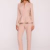 Elegancki kombinezon damski wykonany z wysokiej jakości tkaniny. Charakteryzuje się szerokimi nogawkami, które nadają mu modny, swobodny wygląd. Góra kombinezonu jest podwójna, co dodaje mu struktury i elegancji, a krótkie rękawy zapewniają komfort w cieplejsze dni. Z tyłu znajduje się kryty zamek, który ułatwia zakładanie i zdejmowanie. Boczne kieszenie wsuwane dodają praktyczności i funkcjonalności. Zaprojektowany i uszyty w Polsce, łączy nowoczesny styl z doskonałym rzemiosłem.