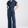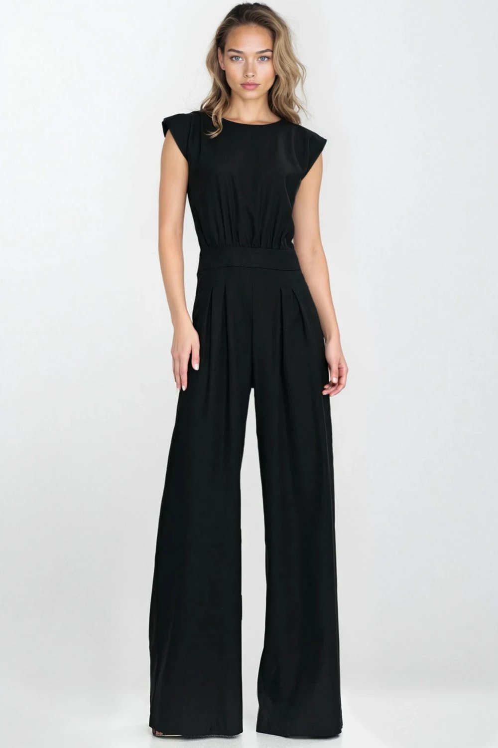 Stylowy kombinezon o kroju regular fit, wykonany z materiału o lnianej fakturze rayonu z dodatkiem lnu, który zapewnia przewiewność i komfort noszenia. Model z dekoltem typu łódka subtelnie eksponuje linię szyi, a wszyte poduszki na ramionach nadają sylwetce wyrazistości i elegancji. Góra dopasowana w talii pięknie podkreśla proporcje, a szerokie nogawki typu palazzo dodają lekkości i nowoczesnego charakteru. Kombinezon zapinany z tyłu na dwa suwaki, osobno w części górnej i dolnej, co ułatwia zakładanie i nadaje całości spójne, estetyczne wykończenie. Doskonały wybór na wyjątkowe okazje i letnie wyjścia.