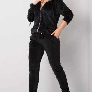 Komplet welurowy składający się z bluzy i długich spodni. Bluza z długim rękawem oraz kapturem, zapinana na zamek, Na przodzie kieszenie wsuwane. Długie spodnie z wiązaniem w pasie, po bokach kieszenie wsuwane.