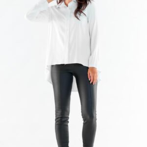 Elegancka koszula z długim rękawem oraz przedłużonym tyłem. Mankiety zakończone gumką dodają koszuli luźnego charakteru. Luźny krój koszuli pozwala na zamaskowanie delikatnych niedoskonałości. W połączeniu ze spodniami z imitacji skóry można stworzyć stylizację na styl miejski. Produkt zaprojektowany i uszyty w Polsce.