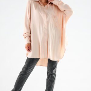 Koszula oversize z długim rękawem o luźnym kroju. Pasuje do spódnic, spodni oraz może służyć jako sukienka. Taka koszula idealnie sprawdzi się w różnorodnych stylizacjach ze szpilkami, trampkami na co dzień i na wieczór. Jest bardzo kobieca i oryginalna. Uszyta z tkaniny, która pięknie układa się podczas noszenia. Produkt wyprodukowany w Polsce.