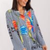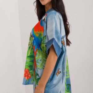 Casualowa koszula damska, idealna na co dzień, wyróżniająca się kolorowym nadrukiem, który dodaje energii i stylu. Wykonana z wiskozy z dodatkiem poliestru, zapewnia komfort i przewiewność, idealną na cieplejsze dni. Koszula ma asymetryczną długość, krótki rękaw z podwiniętym mankietem oraz klasyczny kołnierzyk, co nadaje jej elegancji. Zapięcie na guziki z przodu ułatwia zakładanie i dodaje praktyczności. Ta koszula to doskonały wybór dla kobiet ceniących stylowy, a jednocześnie wygodny ubiór na co dzień.