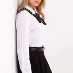 Elegancka koszula damska o klasycznym kroju, idealna na wizytowe okazje, do pracy czy na co dzień, gdy chcesz wyglądać stylowo i profesjonalnie. Koszula została uszyta z wysokiej jakości bawełny z dodatkiem elastanu, co zapewnia komfort noszenia i idealne dopasowanie. Model z klasycznym kołnierzykiem i zapięciem na guziki to esencja ponadczasowej elegancji. Długi rękaw sprawia, że koszula świetnie nadaje się na każdą porę roku. Gładka faktura materiału dodaje jej minimalistycznego szyku, który łatwo można dopasować do różnych stylizacji. Wyjątkowym elementem jest zdejmowana apaszka, która pozwala na subtelne urozmaicenie stylizacji. Możesz nosić ją w zależności od okazji, z apaszką dla bardziej eleganckiego efektu lub bez niej dla prostszego wyglądu. To doskonała propozycja dla kobiet, które cenią klasykę z nutą wszechstronności.