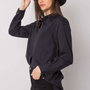 Czarna przedłużana koszula damska z długim rękawem. Koszula zapinana na guziki.