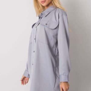 Szara bawełniana koszula damska o przedłużonym kroju. Koszula zapinana na guziki. Na przodzie kieszenie. Idealna na wiele okazji.