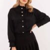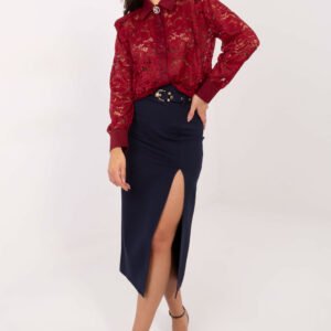 Elegancka koronkowa damska koszula wykonana z delikatnej mieszanki poliestru i wiskozy zachwyca swoim klasycznym krojem oraz subtelnym, koronkowym wykończeniem. Wszyte poduszki na ramionach nadają sylwetce wyrazistości i lekko podkreślają linię ramion, tworząc estetyczną, elegancką formę. Model o standardowej długości doskonale sprawdzi się zarówno do pracy, jak i na wizytowe okazje. Koszula posiada długi rękaw oraz klasyczny kołnierzyk, a zapięcie na guziki podkreśla jej ponadczasowy charakter. Dodatkowym elementem ozdobnym jest stylowa broszka, która nadaje całości wyjątkowego, szykownego akcentu. Koronkowe detale dodają lekkości i kobiecości, czyniąc tę koszulę idealnym wyborem na eleganckie stylizacje.